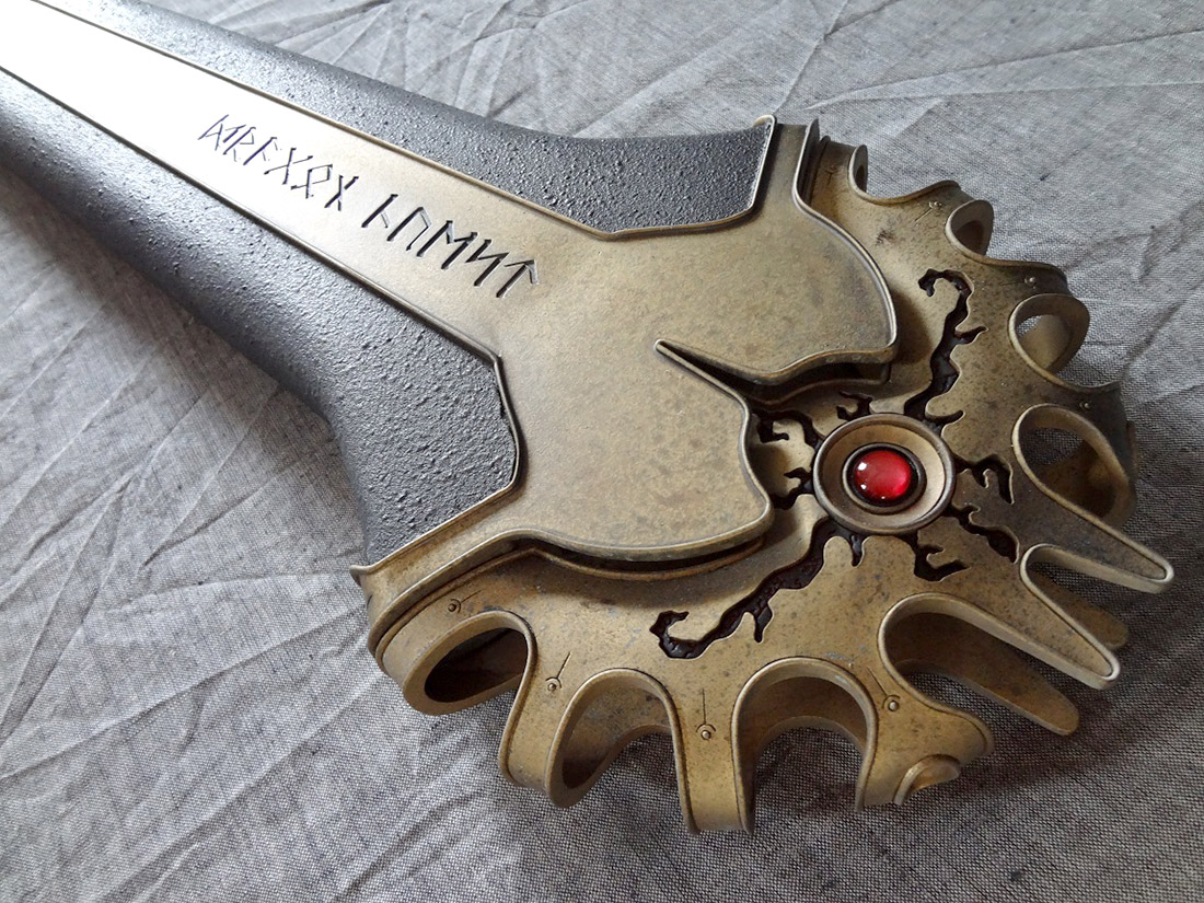 - ・段差パーツ&刀身根元パーツ:ルーン文字を段差パーツから刀身根元パーツにかけて刻印しました。某作品のEDに流れる文章を英訳し、ルーン文字に変換して刻印してあります。