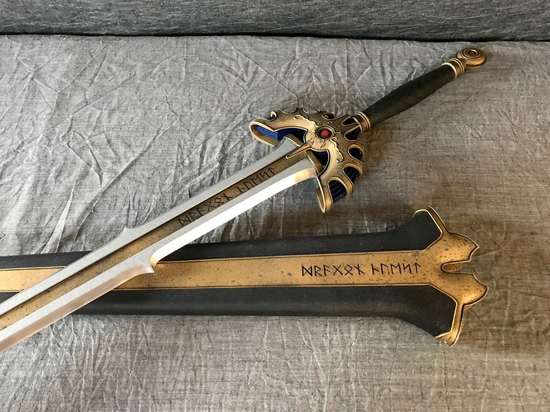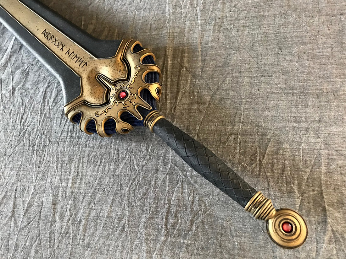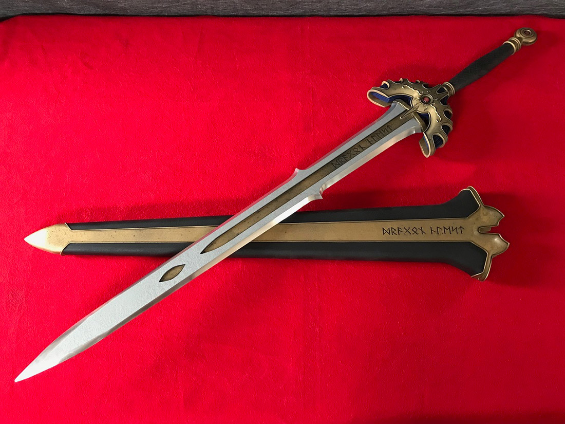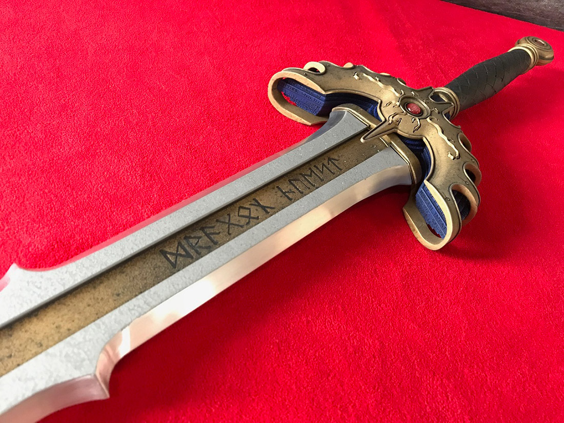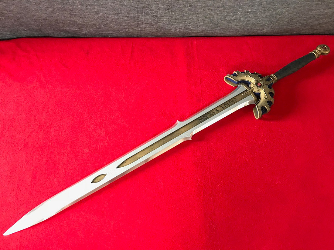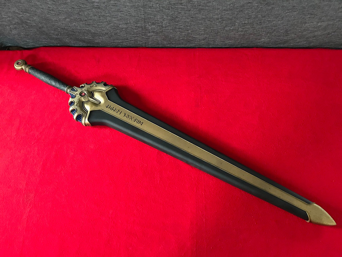 今回のモデルは “剣・金属モデル+着脱ギミック+鞘+交換パーツNo.108”をベースにしつつ、刀身は107番モデルのように真っ直ぐ、段差パーツは明るめの青になっております。