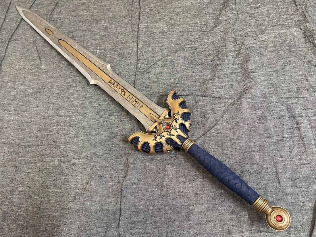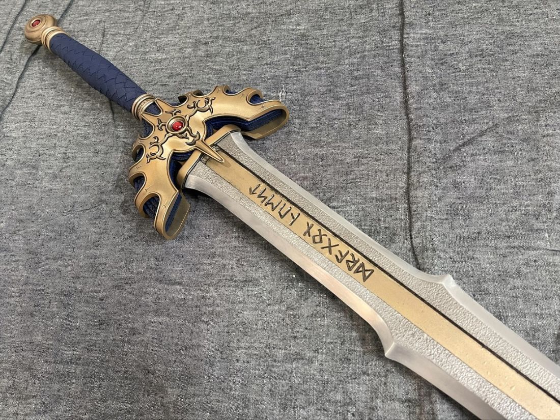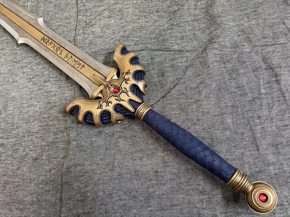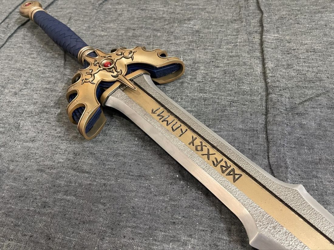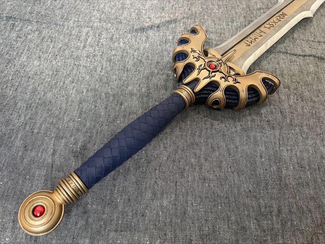 『家宝になる○トの剣を受け取りました!!梱包もプチプチ等で分厚くしっかり守られていて無事でした!悩んで決めた仕様なだけあって質感や重量感、仕上がり大満足です! ヤマトからのピンポンで猛ダッシュしました笑 手に取った瞬間から感動です。 武器工房ギルガメッシュで出来上がる○トの剣が最高で、他に無いと思います。 これからも陰ながら応援しています。 この度は本当に本当にありがとうございました!』 『ご依頼時にお電話にて詳しくご希望される内容を伺って製作を開始いたしました。 134番に引き続き近年の当店にしては珍しい青グリップ+質感塗装を控えめ仕様です。 青系パーツの調整は個々人の好みだけでなくご確認していただくモニター等にも左右される為、段差とグリップの明るさ調整にかなり苦戦してしまいました。 また、ツバには新型となる“バージョン5”を採用しております。 もし機会がありましたら、台座などご依頼いただければとおもいます。』 2022年11月 武器工房G