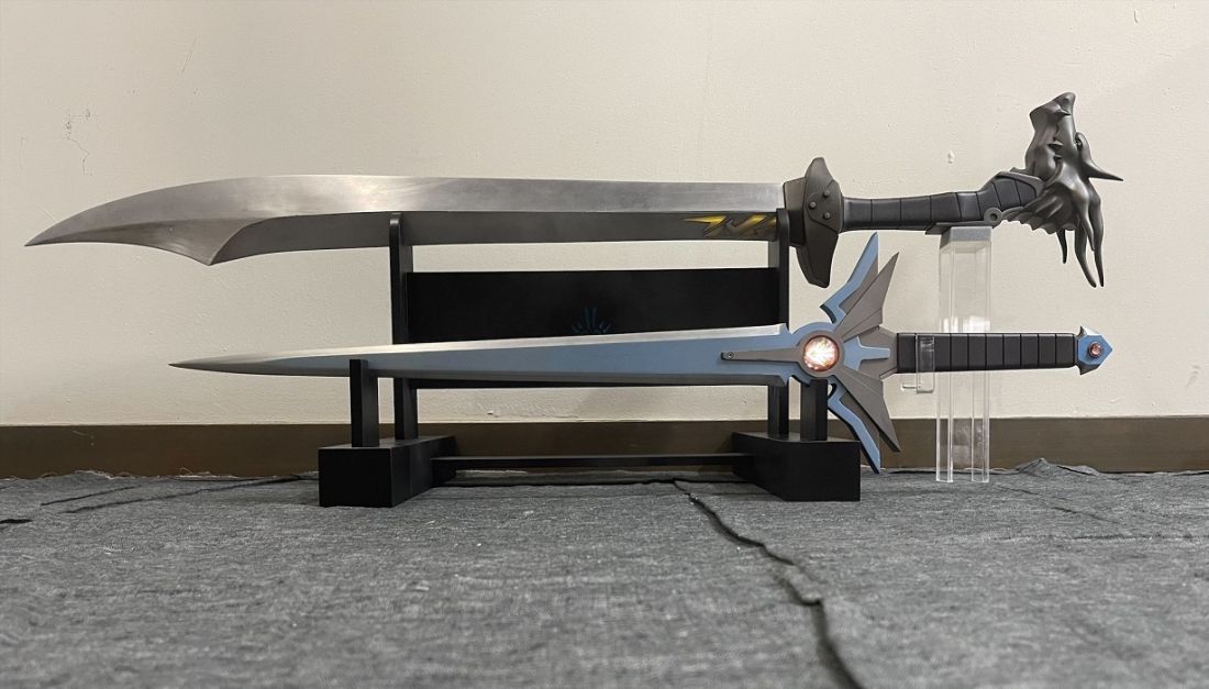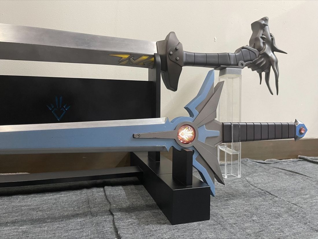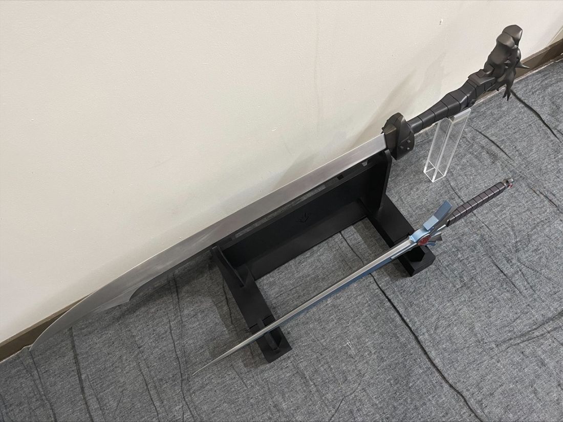 今回の139番モデルのご依頼が2020年1月頃、完成が2023年5月後半。 セットで飾っている114番モデルのご依頼が2014年5月なのでトータル9年かかってしまいました。 114番モデルは2014年5月にご依頼いただいて2018年4月に可動ギミックありの鞘とセットで納品しておりますが、今回は139番モデルとセットで飾る為に専用の台座を作らせていただきました。 2014年から9年以上かかってしまいましたが、漸くセットで飾っていただけます!