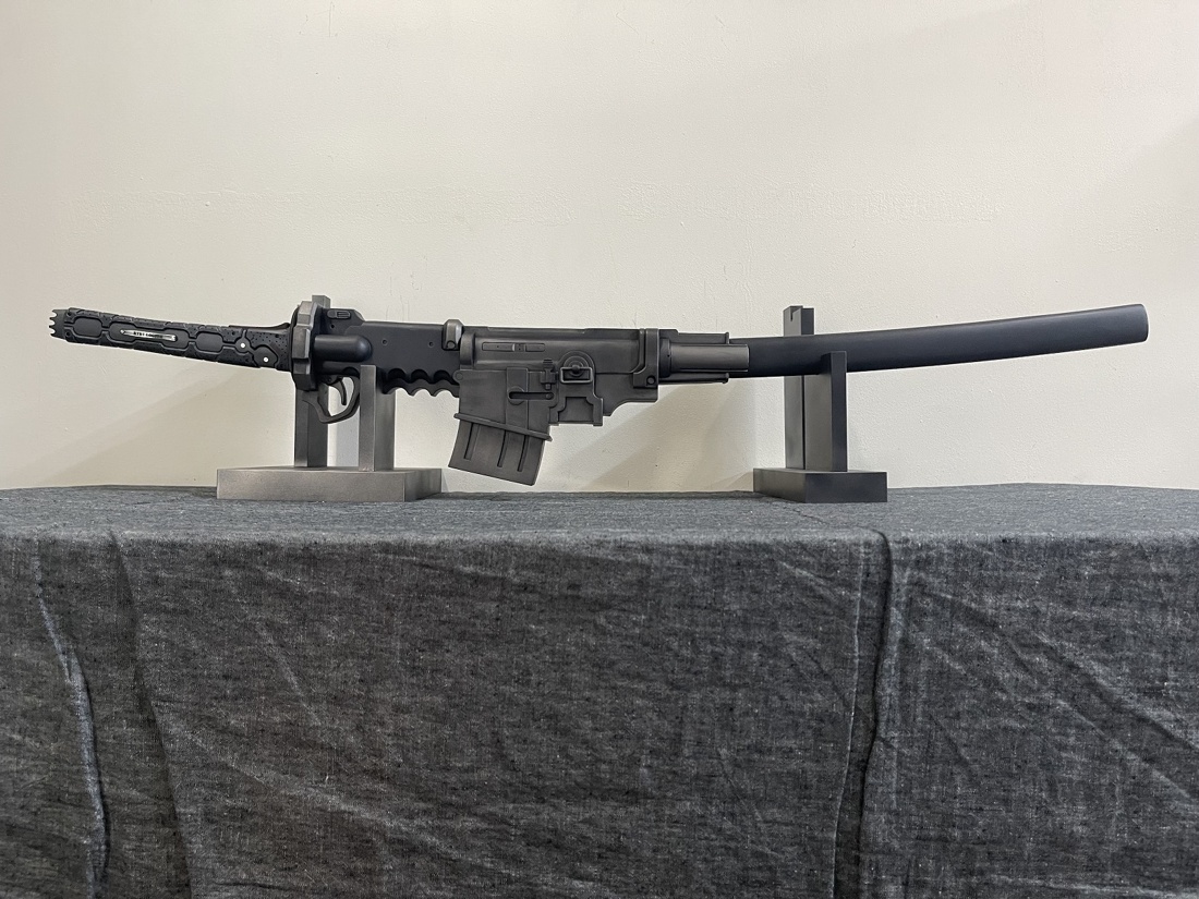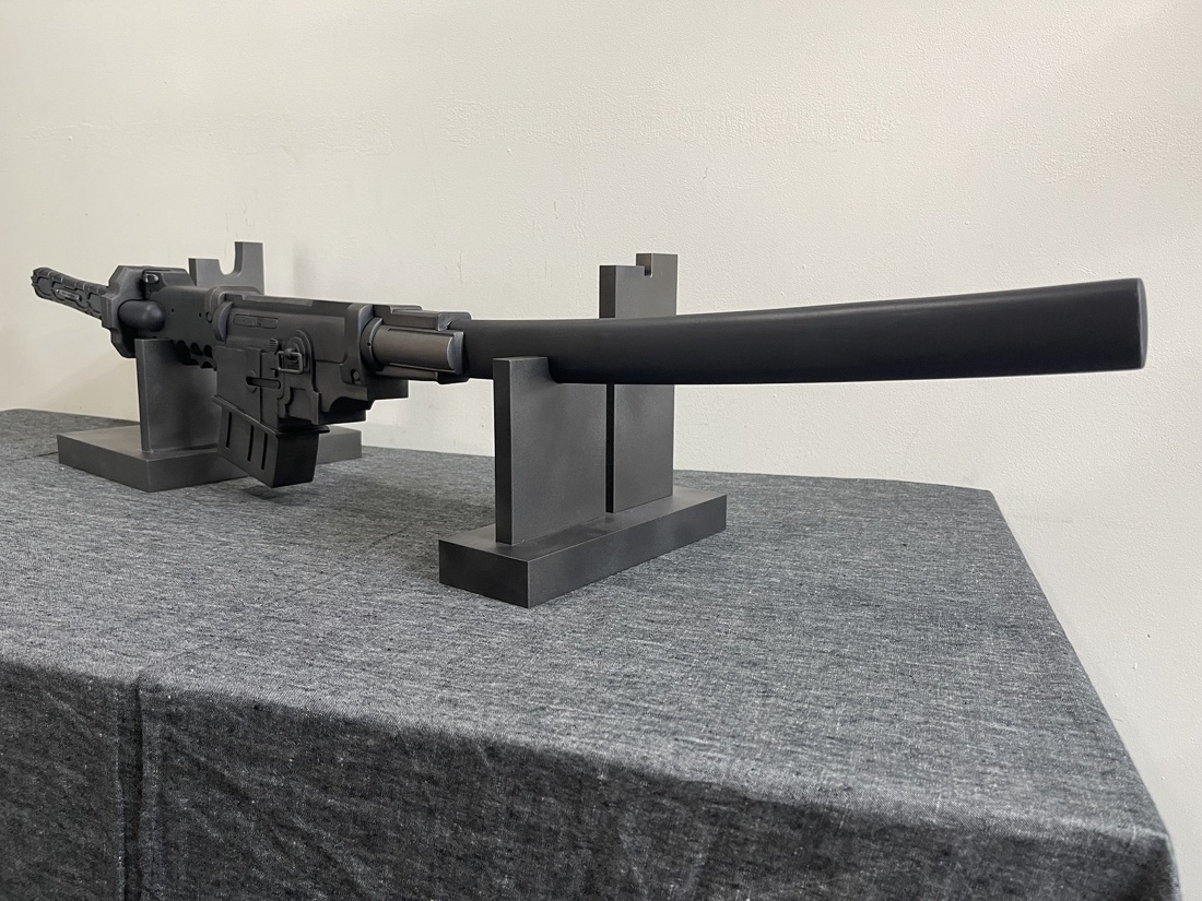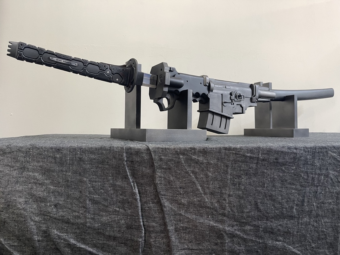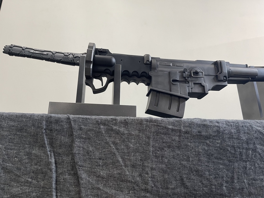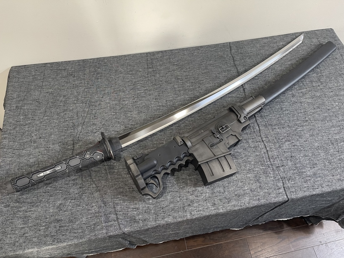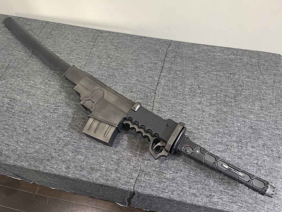 今回のモデルは ・赤いパーツは赤黒く ・使用感あり ・全体的に落ち着いた色合い ・刀身は塗装せず ・プレート文字を変更 上記のような内容でご依頼いただきました。 おそらく設定上は素材の違う各パーツごとに色味が違うのですが、 全体的な渋みを重視して色合いと質感を調整しております。 使い込みによる擦れ、凹み、色褪せ等もバランスを確認しながら表現しました。