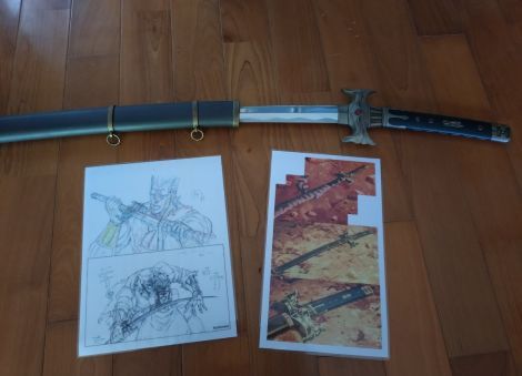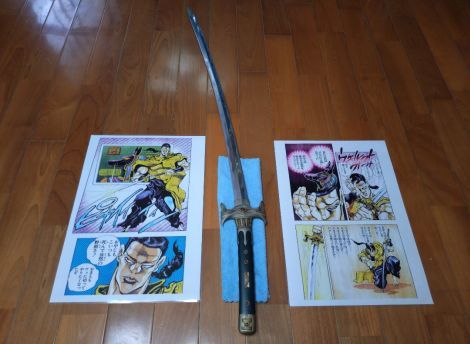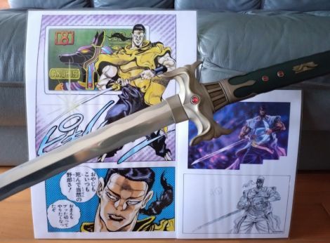作中のセリフに『お…おれ刃物に関しちゃあド素人だがこんな美しい刃物は初めて見たぜ…日本の刀の様だ!まるで冷たい水で濡れているようだ』とありますが、まさしく同意見です。 刀身の研磨は、かなり長い時間をかけて施してくださったと聞き及んでおります。