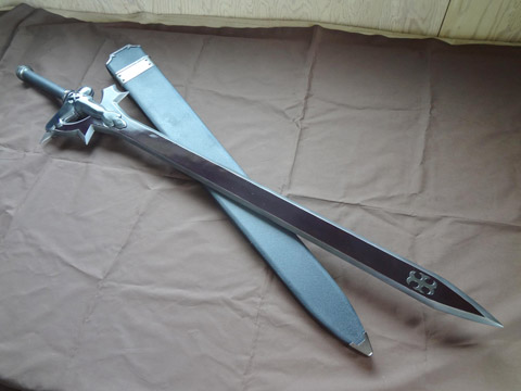 切っ先の十字架のような模様は鞘に入れる際に邪魔にならないよう薄い凸で表現しております。